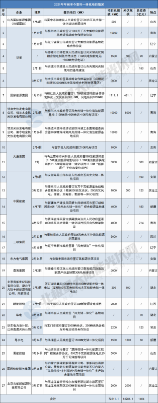(注:上表僅統(tǒng)計有明確簽約規(guī)模的一體化項目)