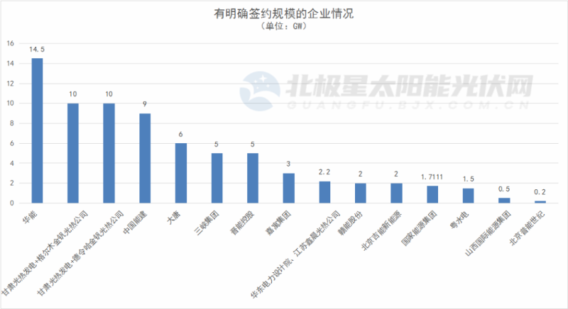青海省以34GW一體化簽約總規(guī)模遙遙領先。1月19日,華能集團青海分公司與格爾木市政府簽署10GW的大型綜合能源基地建設戰(zhàn)略合作框架協(xié)議,雙方“十四五”期間將在能源投資、科技創(chuàng)新、電力外送等方面開展合作;1月末到2月初,甘肅光熱發(fā)電兩個10GW風光熱儲一體化清潔能源發(fā)電基地相繼落戶海西州柴達木循環(huán)經濟試驗區(qū)、格爾木市;4月底,中國能建4GW風光儲氫一體化項目簽約海西蒙古族藏族自治州。