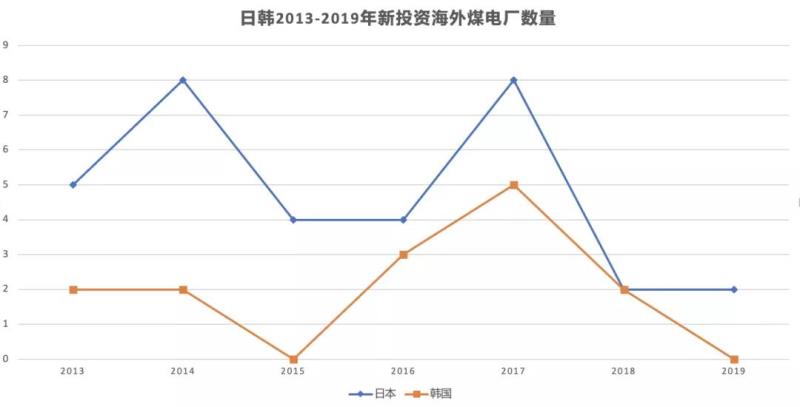 近年來,日韓的新增海外煤電投資出現(xiàn)放緩跡象?!叭蛎弘姽踩谫Y追蹤”的數(shù)據(jù)顯示,2017年以來,兩國海外融資項目數(shù)量均持續(xù)下降,韓國2019年無新增投資項目。