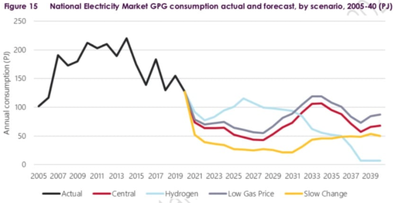AEMO報(bào)告發(fā)現(xiàn),即使價(jià)格下跌工業(yè)用戶的天然氣需求也不太可能增加。2020年澳大利亞主要電網(wǎng)的天然氣發(fā)電量下降了23%,降至10年來(lái)的最低水平,而大規(guī)模風(fēng)力發(fā)電、太陽(yáng)能發(fā)電和屋頂太陽(yáng)能光伏發(fā)電的裝機(jī)卻在不斷增加。預(yù)計(jì)2021年,用于發(fā)電的天然氣消耗量將再下降40%,到2038年隨著綠色氫氣進(jìn)入市場(chǎng),電網(wǎng)的運(yùn)營(yíng)將轉(zhuǎn)向注重需求側(cè)管理而非電源供應(yīng),天然氣發(fā)電可能幾乎完全消失。