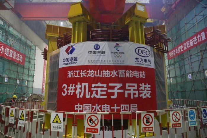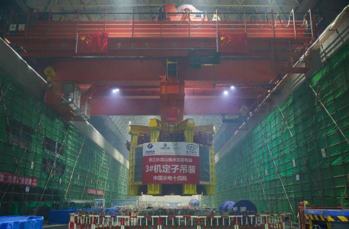 5月17日下午,三峽集團浙江長龍山抽水蓄能電站3號機組定子順利吊裝。至此,該工程6臺機組已有3臺完成定子吊裝,標志著電站機組安裝工作步入快車道。