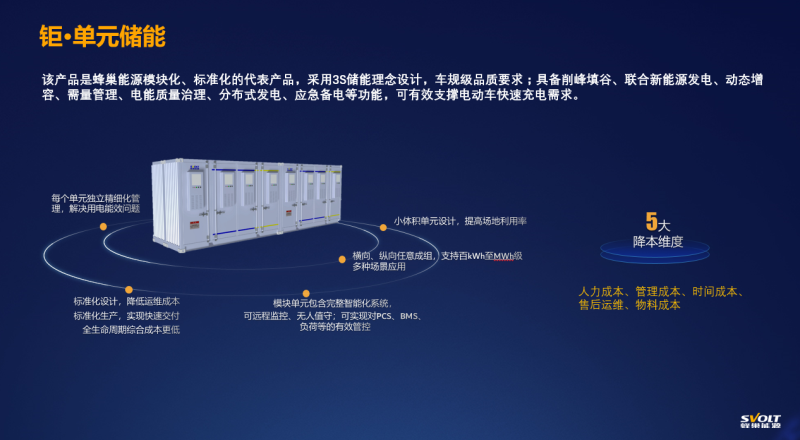 該產(chǎn)品是蜂巢能源模塊化、標(biāo)準(zhǔn)化的代表產(chǎn)品,采用3S儲(chǔ)能理念設(shè)計(jì),車規(guī)級(jí)品質(zhì)要求;具備削峰填谷、聯(lián)合新能源發(fā)電、動(dòng)態(tài)增容、需量管理、電能質(zhì)量治理、分布式發(fā)電、應(yīng)急備電等功能,可有效支撐電動(dòng)車快速充電需求。
