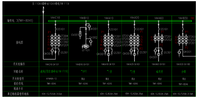 上圖為寶清電站接110kV碧嶺變電站的10kV母線1M,圖中主要反映本站從升壓變壓器至電網(wǎng)及站用電系統(tǒng)的電氣連接關(guān)系。