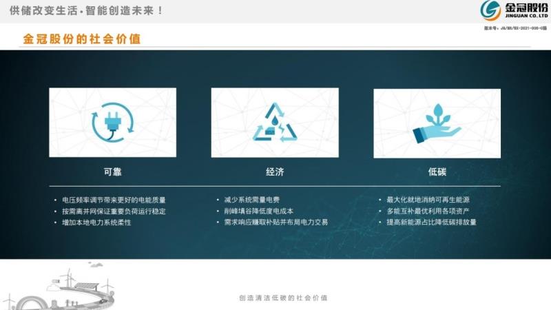 未來,吉林省金冠電氣股份有限公司,以“供儲改變生活、智能創(chuàng)造未來”的發(fā)展源動(dòng)力,創(chuàng)造清潔低碳的社會(huì)價(jià)值,立足新能源儲能裝備業(yè)務(wù),加快清潔能源系統(tǒng)集成及投資建設(shè)業(yè)務(wù)發(fā)展,創(chuàng)新拓展清潔電力轉(zhuǎn)換技術(shù)領(lǐng)域新業(yè)務(wù),努力將公司打造成為新能源領(lǐng)域的領(lǐng)先型企業(yè)。