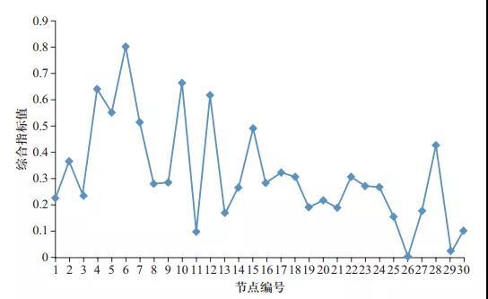 ? 圖3 各節(jié)點(diǎn)的綜合指標(biāo)