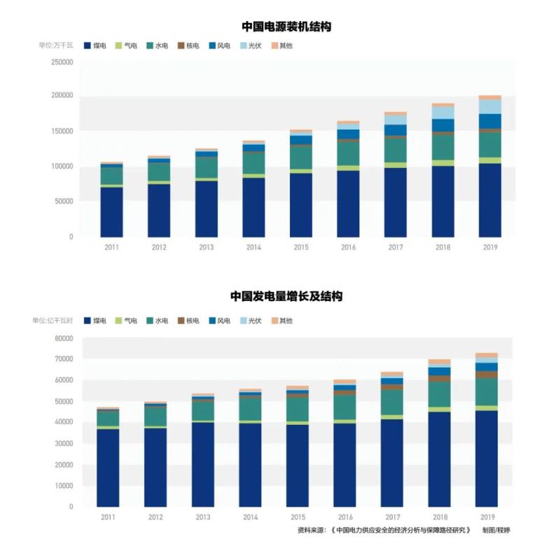 報(bào)告發(fā)布后,在社交媒體、行業(yè)人士間引發(fā)了巨大爭議,支持和反對“煤電退出”的聲音都有不少。這些爭論,在一年之后的今天,顯得更有緊迫性和現(xiàn)實(shí)性。去年9月,中國首次明確宣布,二氧化碳排放力爭于2030年前達(dá)到峰值,努力爭取2060年前實(shí)現(xiàn)碳中和。電力行業(yè)是最主要的碳排放部門,2020年,中國電力行業(yè)碳排放占全國碳排放總量的37%。一煤獨(dú)大的局面在電力行業(yè)十分突出。