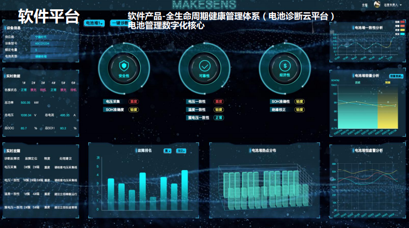 儲能有三大痛點:1.安全性,2.一致性,一致性問題也會帶來進一步的安全性,3.怎么做檢測,這么多又串又并,怎么知道某個電芯有問題,是要拿出來一個個測嗎?前面北德同事講過全生命周期,一個儲能集裝箱放在那里,你怎么知道它什么時候該退下來、有危險?針對三大痛點我們開發(fā)了“電池診斷云平臺”。