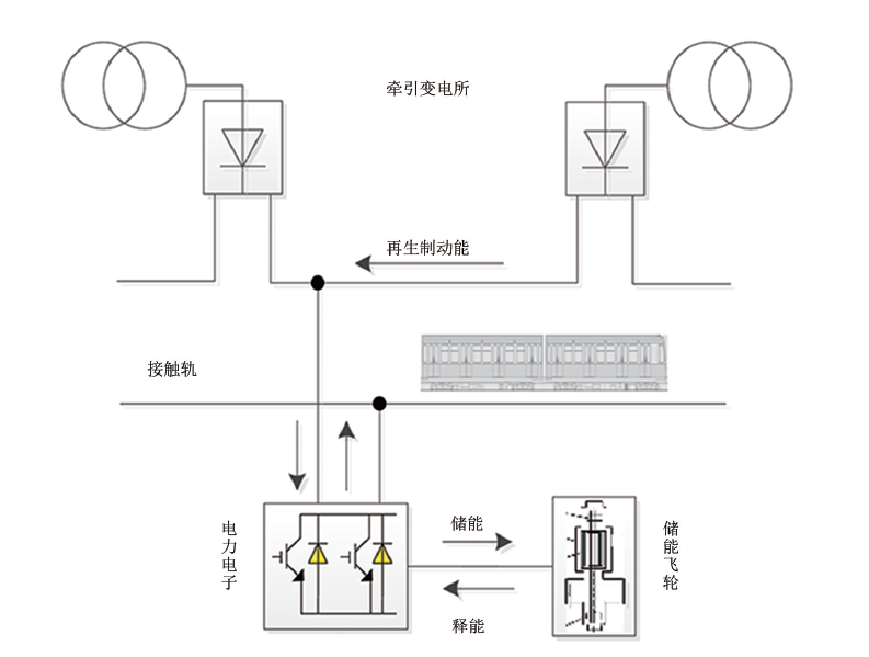 技術(shù)突破:設(shè)計(jì)了一種基于飛輪儲(chǔ)能陣列的直流電能循環(huán)利用系統(tǒng),可實(shí)現(xiàn)車(chē)輛進(jìn)站制動(dòng)能量的快速吸收和出站時(shí)的功率補(bǔ)償,并通過(guò)對(duì)飛輪陣列關(guān)鍵指標(biāo)進(jìn)行論證,確定了飛輪并聯(lián)方案和容量配置。