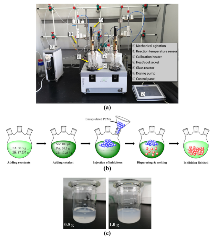 技術(shù)突破:制備了以硅殼作為抑制劑的膠囊化相變材料(PCMs),可改善反應(yīng)堆的熱能控制從而緩解反應(yīng)熱失控,同時(shí)提出了一種抑制效應(yīng)-動(dòng)力學(xué)模型來(lái)模擬熱失控反應(yīng)的抑制過(guò)程。