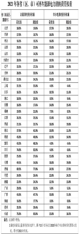 根據(jù)《通知》,從2021年起,每年初滾動(dòng)發(fā)布各省權(quán)重,同時(shí)印發(fā)當(dāng)年和次年消納責(zé)任權(quán)重,當(dāng)年權(quán)重為約束性指標(biāo),各省按此進(jìn)行考核評估,次年權(quán)重為預(yù)期性指標(biāo),各省按此開展項(xiàng)目儲(chǔ)備。