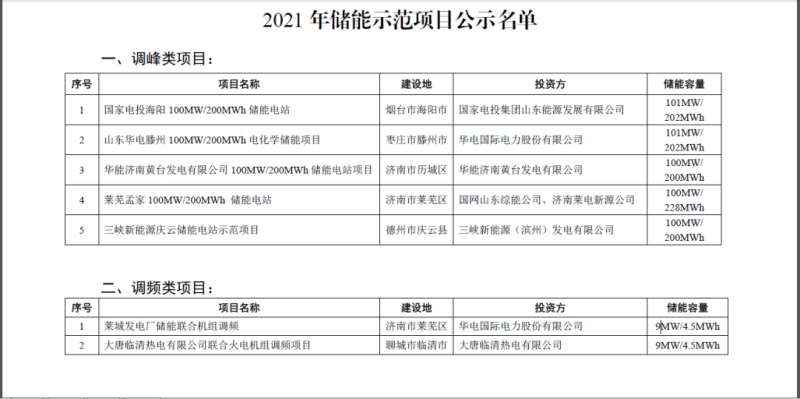 根據(jù)《關(guān)于組織申報(bào)2021年儲能示范項(xiàng)目的通知》(魯發(fā)改能源〔2021〕343號)精神,經(jīng)各市申報(bào)和專家評審,擬將5個調(diào)峰項(xiàng)目、2個調(diào)頻項(xiàng)目列為2021年儲能示范項(xiàng)目(具體名單見附件),現(xiàn)予以公示。公示時間為2021年6月7日至6月15日。