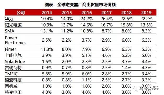 進(jìn)入逆變器市場后,華為在短時間里實現(xiàn)了快速增長。2021年1月,方正證券發(fā)布研報顯示,2015年華為逆變器出貨量首次超過SMA公司,排名全球第一。此后,華為逆變器出貨量已連續(xù)多年在全球市場份額排名第一。