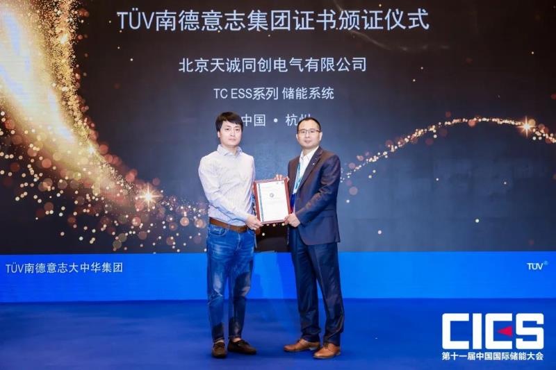 天誠(chéng)同創(chuàng)旗下型號(hào)為T(mén)C ESS系列儲(chǔ)能系統(tǒng)產(chǎn)品獲TüV南德安全認(rèn)證證書(shū)
