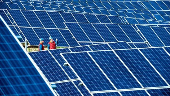 ▲ 4月28日,國網(wǎng)山東淄博供電公司技術(shù)人員巡檢光伏電站。遠德亮攝