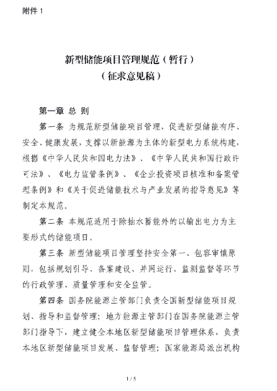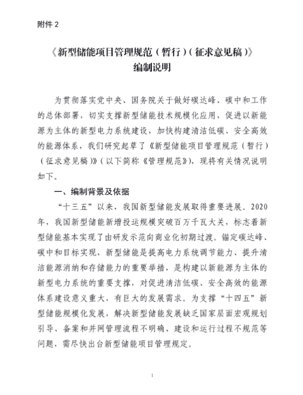 1. 新型儲能項(xiàng)目管理規(guī)范(暫行)(征求意見稿)