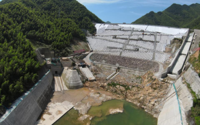 隨著最后一道鋼筋混凝土面板封縫止水施工完成,長(zhǎng)龍山抽水蓄能電站下水庫(kù)大壩防滲面板工程正式完工。