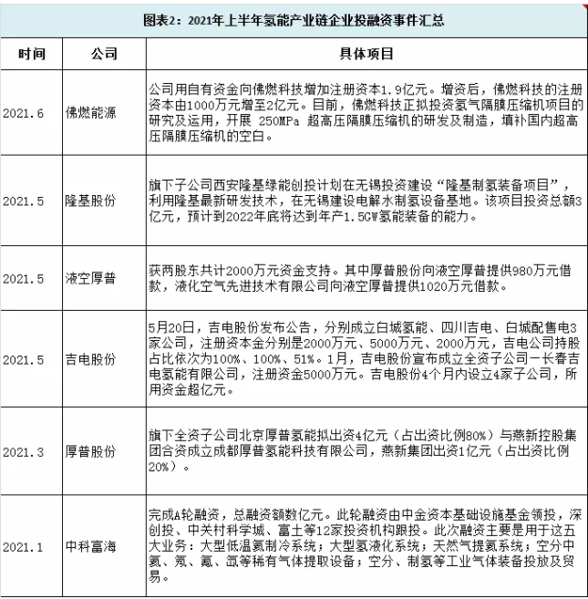 氫能對實現(xiàn)“雙碳”具有不可替代的作用,今年以來關注氫能源行業(yè)的機構(gòu)明顯增多,中科富海今年1月份的A輪數(shù)億融資就有中金資本基礎設施基金領投,深創(chuàng)投、中關村科學城、富土等12家投資機構(gòu)跟投。
