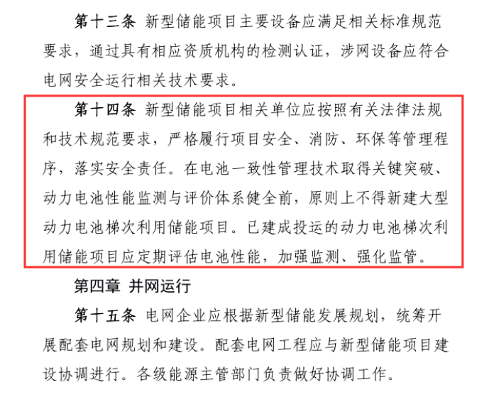 中國儲能網(wǎng)訊:近日,動力電池梯次利用儲能項目在行業(yè)內引起廣泛熱議,起因則源于國家能源局的一則公告。6月22日,國家能源局發(fā)布了公開征求《新型儲能項目管理規(guī)范(暫行)(征求意見稿)》(以下簡稱《管理規(guī)范》)意見的公告?!豆芾硪?guī)范》征求意見稿在關于“備案建設”中提到,“原則上不得新建大型動力電池梯次利用儲能項目”。記者了解到,動力電池梯次利用儲能項目在政策上的“遇冷”,再次將行業(yè)的關注點引到了項目安全問題和動力電池技術難題以及規(guī)范使用上。