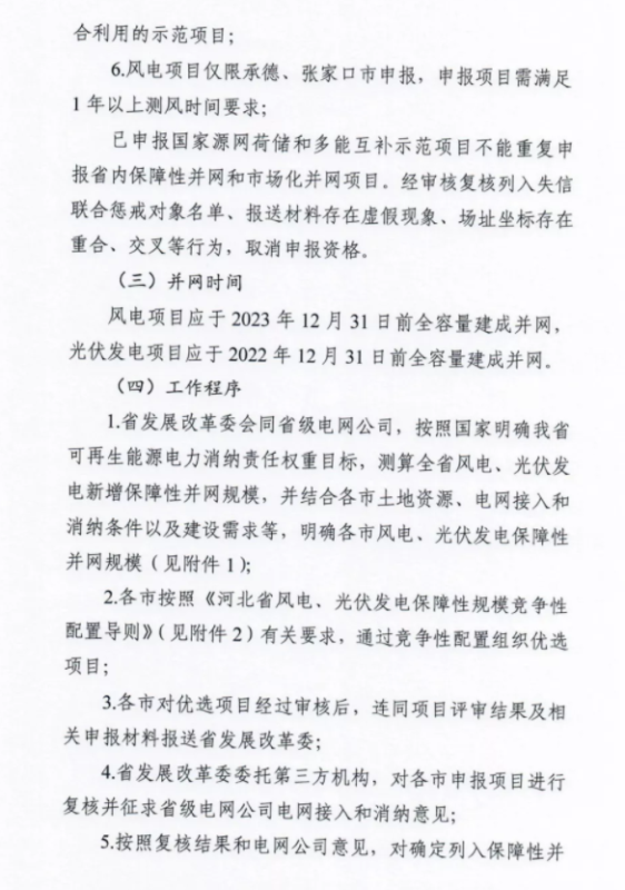 需要注意的是本批次光伏保障性項(xiàng)目與市場(chǎng)化項(xiàng)目并網(wǎng)期限為2022年12月31日,風(fēng)電項(xiàng)目并網(wǎng)期限為2023年12月31日。另外,已申報(bào)國家源網(wǎng)荷儲(chǔ)和多能互補(bǔ)示范項(xiàng)目不能重復(fù)申報(bào)省內(nèi)保障性并網(wǎng)和市場(chǎng)化并網(wǎng)項(xiàng)目。嚴(yán)禁將配套產(chǎn)業(yè)作為項(xiàng)目開發(fā)建設(shè)的門檻,不得以任何名義增加新能源企業(yè)的不合理投資成本。