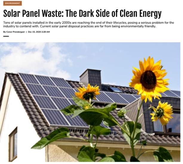 中國儲(chǔ)能網(wǎng)訊:2000年代初安裝的大量太陽能電池板正接近其生命周期的終點(diǎn),這給太陽能產(chǎn)業(yè)帶來了一個(gè)嚴(yán)峻的問題,目前的太陽能電池板處理方法遠(yuǎn)遠(yuǎn)達(dá)不到環(huán)保的要求。Discover Magazine雜志網(wǎng)站發(fā)表署名Conor Prendergast的文章,題目是:Solar Panel Waste: The Dark Side Of Clean Energy(太陽能電池板廢料:清潔能源的背面),摘要如下:
