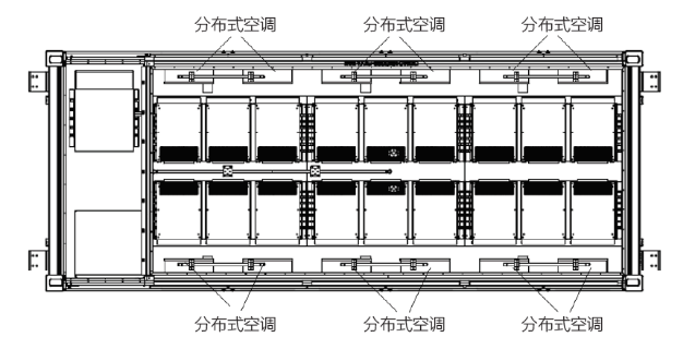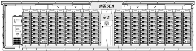 傳統(tǒng)儲能集裝箱內配置1-2個集中式空調,采用縱向風道進行散熱,風道長度長達約6米-12米,由于散熱通道太長,無法保障每個電池包和電池簇的溫度一致性。