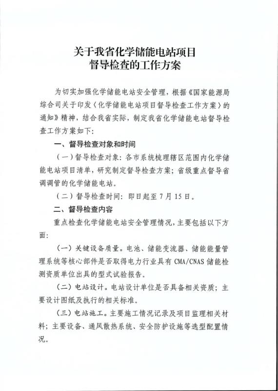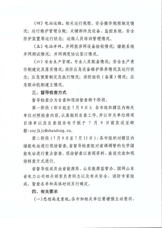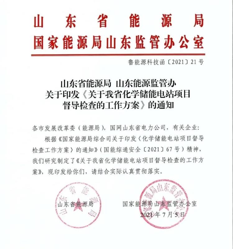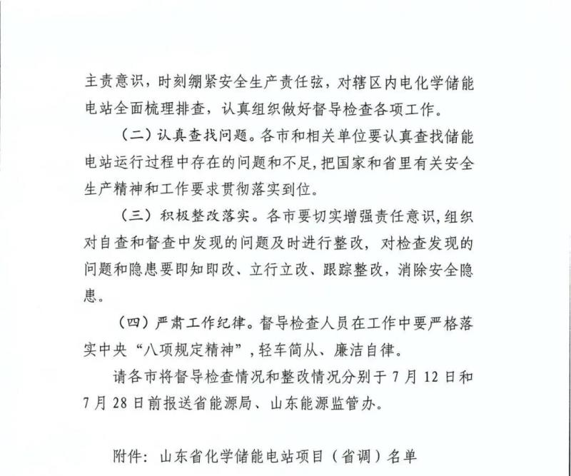 7月5日,山東省能源局、國家能源局山東監(jiān)管辦公室發(fā)布《關(guān)于我省化學(xué)儲能電站項(xiàng)目督導(dǎo)檢查的工作方案》,明確了山東化學(xué)儲能電站項(xiàng)目的督導(dǎo)檢查對象、督導(dǎo)檢查時間、督導(dǎo)檢查內(nèi)容、督導(dǎo)檢查方式及有關(guān)要求。