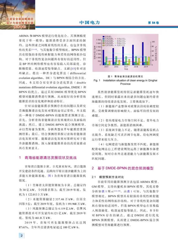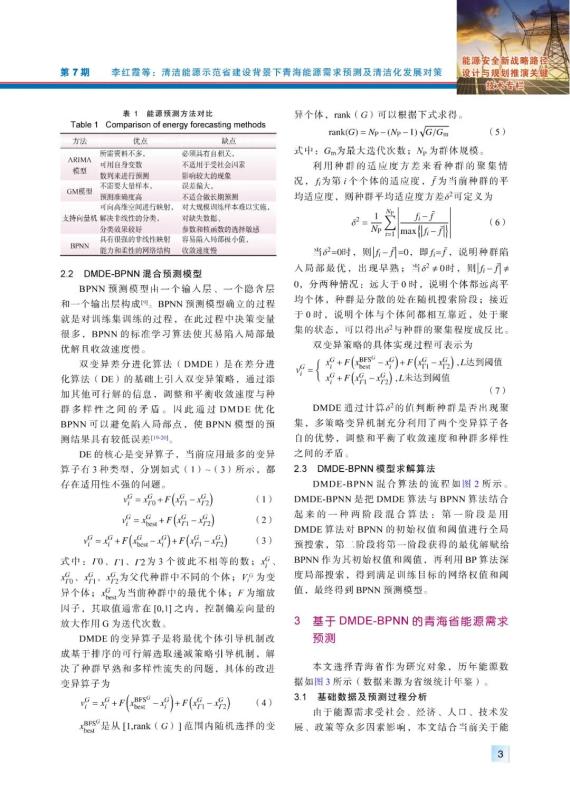 摘要:2018年青海省獲批建設(shè)國(guó)家清潔能源示范省并于同年提出《青海省建設(shè)國(guó)家清潔能源示范省工作方案(2018—2020年)》,以綠色、高效和安全為總目標(biāo),推進(jìn)能源生產(chǎn)和消費(fèi)革命,為中國(guó)能源清潔轉(zhuǎn)型與現(xiàn)代能源體系建設(shè)貢獻(xiàn)力量。在清潔能源示范省建設(shè)背景下,開展青海能源需求預(yù)測(cè)及清潔化發(fā)展對(duì)策研究。首先,分析青海省清潔能源發(fā)展現(xiàn)狀以及面臨的挑戰(zhàn);然后,通過雙變異差分進(jìn)化算法優(yōu)化BP神經(jīng)網(wǎng)絡(luò)預(yù)測(cè)模型,建立DMDE-BPNN混合預(yù)測(cè)模型;分析青海省典型水平年能源需求預(yù)測(cè)結(jié)果,探討青海省能源清潔化發(fā)展對(duì)策。