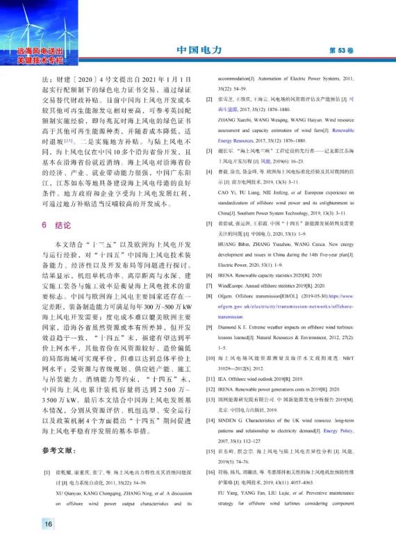時(shí)智勇, 王彩霞, 李瓊慧. “十四五”中國海上風(fēng)電發(fā)展關(guān)鍵問題[J]. 中國電力, 2020, 53(7): 8-17.