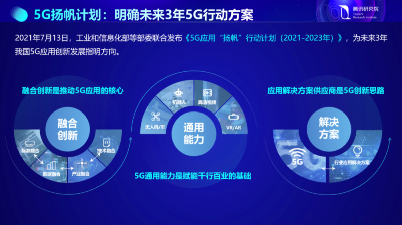 2021年7月13日,工信部等十部門印發(fā)了《5G應用“揚帆”行動計劃(2021-2023年)》,把5G融合應用提高到戰(zhàn)略規(guī)劃高度。
