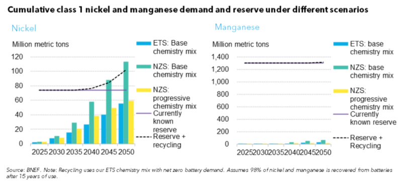 總的來說,即使在凈零排放情況下,電動汽車市場的增長也不會受到金屬供應(yīng)限制的影響。對于錳等金屬,目前已知儲量的供應(yīng)足以滿足2050年之前的需求。為了保持鋰、鎳和鈷的需求平衡,需要采取一系列措施,要求政府、汽車制造商、電池制造商、礦工和回收商通力合作。這包括需要密集的充電網(wǎng)絡(luò)、新的電池化學(xué)制品、廣泛的回收利用以及對新的采礦和煉油能力的投資。新的開采技術(shù)和持續(xù)的高價格也可能改變已知的可采儲量。