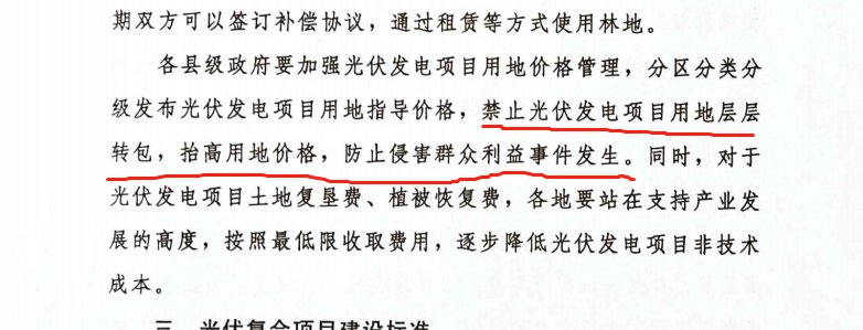 一方面,榆林市文件中要求“光伏發(fā)電項(xiàng)目需提供與縣級可再生能源平臺公司簽訂的土地租賃協(xié)議”,即意味著光伏企業(yè)需要從縣級可再生能源平臺公司轉(zhuǎn)租土地。但陜西省能源局于2020年5月下發(fā)的用地文件明確強(qiáng)調(diào)“禁止光伏發(fā)電項(xiàng)目用地層層轉(zhuǎn)包,抬高用地價(jià)格,防止侵害群眾利益事情發(fā)生。”