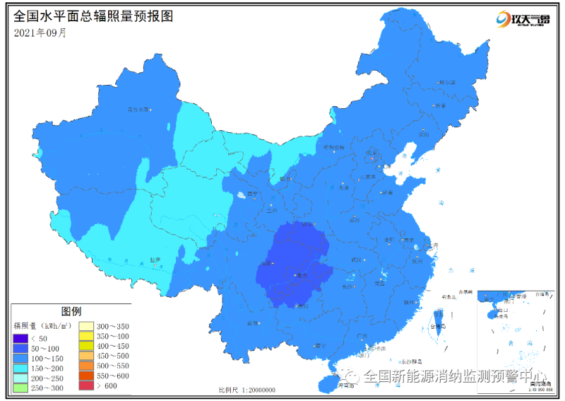 附圖6 全國2021年9月水平面總輻照量預(yù)報(bào)圖