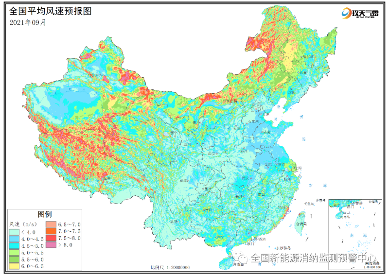 附圖5 全國2021年9月平均風(fēng)速分布預(yù)報(bào)圖