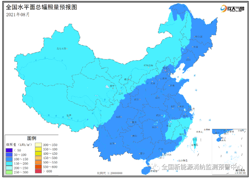附圖4 全國2021年8月水平面總輻照量預(yù)報(bào)圖