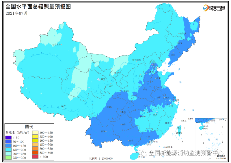 附圖2 全國2021年7月水平面總輻照量預(yù)報(bào)圖