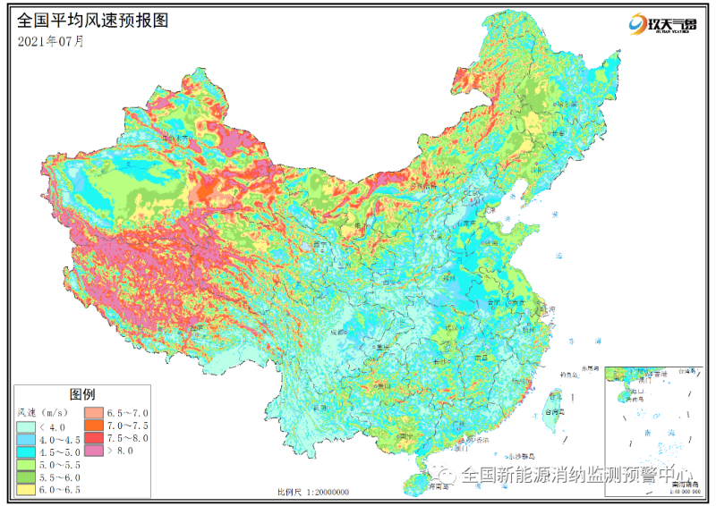 附圖1 全國2021年7月平均風(fēng)速分布預(yù)報(bào)圖