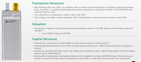 7 月 13 日,SES 公司宣布與特殊目的收購(gòu)公司(SPAC)艾芬豪資本收購(gòu)公司(Ivanhoe Capital Acquisition Corp.)達(dá)成最終的合并協(xié)議,計(jì)劃在紐交所上市。