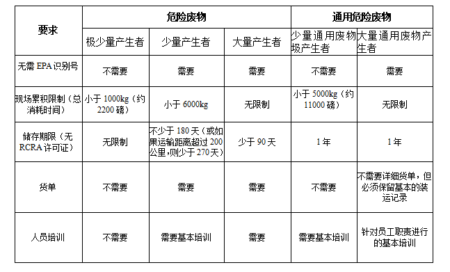 ·小批量通用廢物產(chǎn)生者是指在任何時(shí)候累積少于5000kg(約11000磅)通用廢物的實(shí)體。