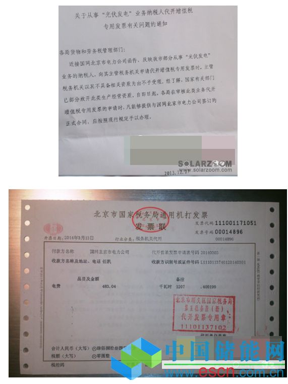 2014年2月,國家電網(wǎng)順義供電公司按時送來了我家光伏系統(tǒng)2013年的光伏發(fā)電結(jié)算單(見附圖),確認(rèn)了應(yīng)得的光伏補(bǔ)貼和上網(wǎng)電費(fèi)。其中,光伏上網(wǎng)電費(fèi)部分,由順義國稅局代開了發(fā)票后,國網(wǎng)順義公司同意支付,問題得到解決;光伏補(bǔ)貼部分,順義國稅經(jīng)與北京市國稅咨詢,認(rèn)為目前沒有對應(yīng)光伏補(bǔ)貼的發(fā)票類型,并認(rèn)為財政補(bǔ)貼是不需要開發(fā)票的。本人將國稅的解釋轉(zhuǎn)給國網(wǎng)順義公司后,國網(wǎng)經(jīng)內(nèi)部協(xié)商,堅持認(rèn)為補(bǔ)貼必須先開發(fā)票才能支付。國網(wǎng)和國稅雙方一直僵持近3月,光伏補(bǔ)貼領(lǐng)取受阻,問題無法解決。作為一個平民百姓,只能表示無奈。