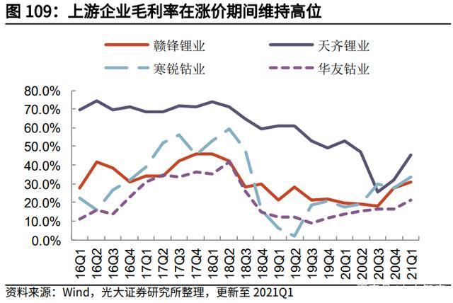 (2)2017-18 年,政策和技術(shù)方向開始逐步三元材料傾斜,對氫氧化鋰的快速 拉動,氫氧化鋰的價格維持在 16 萬元/噸,硫酸鈷的漲價也是始于 2017 年初, 在 2018 年達(dá)到頂峰。