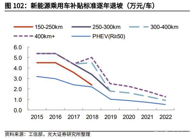 2019-2020 年繼續(xù)退補,補助標(biāo)準(zhǔn)在 2016 年基礎(chǔ)上下降 40%。而 2021 年早已 進(jìn)入補貼影響弱化時期,國補將在 2023 年完全退坡,2021 年單車退補金額僅 0.3-0.4 萬元,對于產(chǎn)業(yè)鏈影響也大幅減弱。在市場化驅(qū)動階段:用戶體驗、性 價比則是更為關(guān)鍵的指標(biāo)因素。