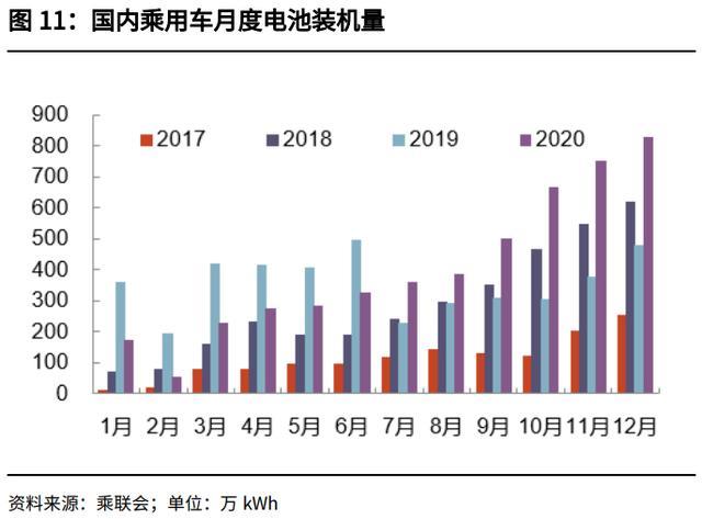明星車型上市帶動鐵鋰需求。磷酸鐵鋰裝機(jī)的大部分增量是從 2020 年下半年開 始,主要有三種明星車型帶動:五菱宏光 MINI、特斯拉 Model 3 鐵鋰版、比亞 迪漢,預(yù)計還將有很多車型往鐵鋰路線轉(zhuǎn)。新能源汽車由政策拉動向市場化轉(zhuǎn)變, 對補貼依賴度降低,因而 2021Q1 顯現(xiàn)出淡季不淡的態(tài)勢。