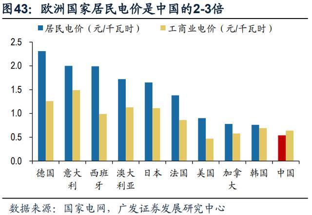 歐洲高電價存在天然配儲需求,光伏配儲能可大幅降低用電成本。據(jù)國家電網(wǎng) 統(tǒng)計,與可獲得數(shù)據(jù)的全球 35 個 OECD 國家比較,2019 年中國銷售電價每千瓦 時約 0.62 元,約為各國平均水平的 60%,居民用電價僅高于墨西哥。歐洲國家中 電價最高的德國,工業(yè)電價平均 1.26 元/KWh,居民電價平均 2.31 元/KWh,在海 外用電價格不斷提升的背景下,光伏配儲能可降低德國居民 72.7%的用電成本,高 電價催生天然配儲需求。