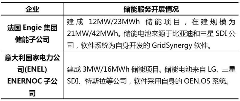 表1 國外能源電力企業(yè)的儲能服務(wù)開展情況
