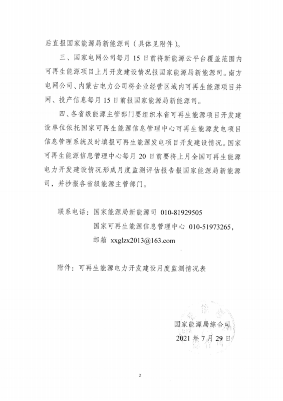 7月29日,國家能源局綜合司下發(fā)了《關于開展可再生能源發(fā)電項目開發(fā)建設按月調度的通知》,擬按月開展項目開發(fā)建設情況調度,從核準、開工、建設、并網到投產進行全過程調度。上報項目包含光伏、風電、水電、生物質發(fā)電、整縣推進分布式光伏以及源網荷儲項目。
