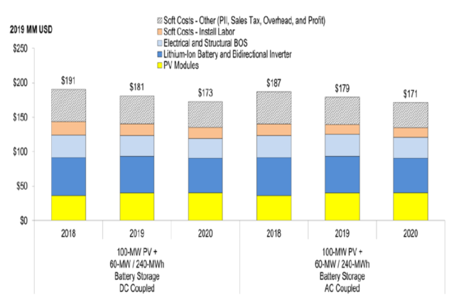 ·雖然交流耦合系統(tǒng)和直流耦合系統(tǒng)(如逆變器、結(jié)構(gòu)BOS、電氣BOS)在配置上存在一些差異,但它們之間的總成本差異僅為1%。