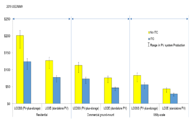 對(duì)于住宅太陽(yáng)能+儲(chǔ)能系統(tǒng)來(lái)說(shuō),平準(zhǔn)化能源成本在沒(méi)有獲得聯(lián)邦稅收抵免(ITC)的情況下為201美元/MWh,在獲得30%聯(lián)邦稅收抵免(ITC)的情況下為124美元/MWh。對(duì)于商業(yè)太陽(yáng)能+儲(chǔ)能系統(tǒng),在沒(méi)有獲得聯(lián)邦稅收抵免(ITC)的情況下為113美元/MWh,在獲得30%聯(lián)邦稅收抵免(ITC)情況下為73美元/MWh。對(duì)于公用事業(yè)規(guī)模的太陽(yáng)能+儲(chǔ)能系統(tǒng),在沒(méi)有獲得聯(lián)邦稅收抵免(ITC)情況下為83美元/MWh,在獲得30%聯(lián)邦稅收抵免(ITC)的情況下為57美元/MWh。(未完待續(xù),嚴(yán)禁轉(zhuǎn)載)