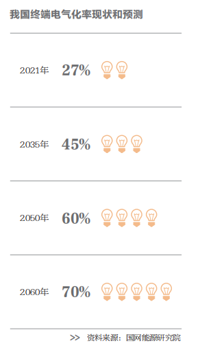 構建適應“雙碳”目標發(fā)展的現(xiàn)代能源體系,需要向以電為中心的能源系統(tǒng)轉型,充分發(fā)揮電力在能源轉換利用、傳輸分配和高效配置中的關鍵作用,特別是要大力提升能源消費側的電氣化水平和節(jié)能降耗水平。