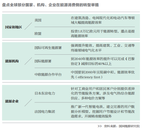 構建清潔低碳、安全高效的能源消費體系,已成為全世界能源系統(tǒng)轉型發(fā)展的重要共識。近年,發(fā)達國家、能源機構和知名能源電力企業(yè)高度重視能源高效利用,通過推動能源消費側電氣化和高效化發(fā)展,促進節(jié)能降耗,降低能源消費強度。