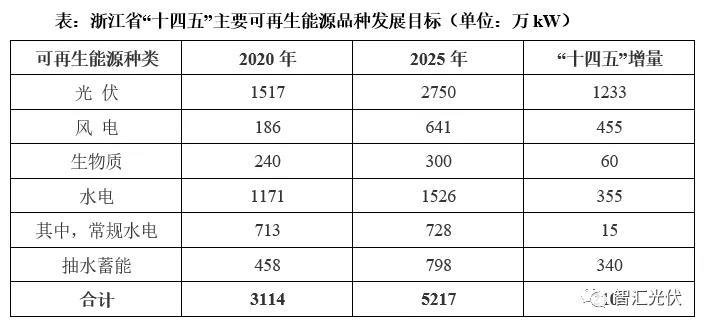 5月7日,浙江省發(fā)改委、 浙江省能源局下發(fā)《浙江省可再生能源發(fā)展“十四五”規(guī)劃》(詳見《新增12GW光伏!浙江省可再生能源“十四五”規(guī)劃出臺》),提出到“十四五”末: